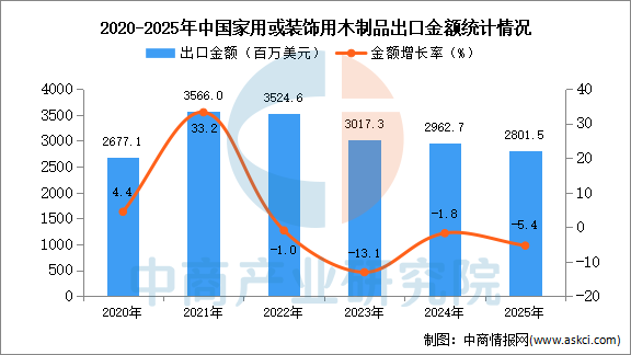 2025年1-9月中国度用或粉饰用木成品出口数据统计阐发:出口量71万吨